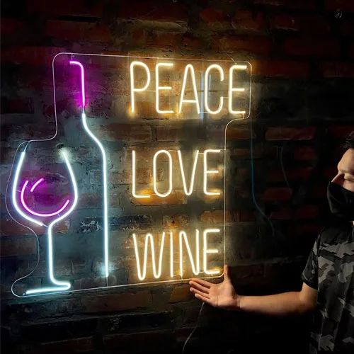 クールなピースラブワインネオンサインをサインメーカーから直接カスタマイズ